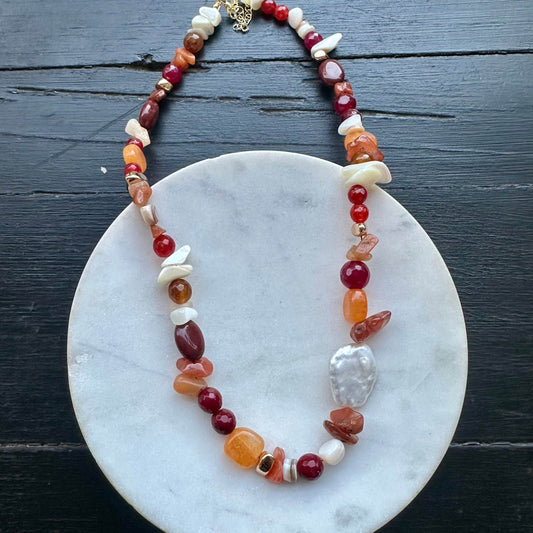 Diseños frescos y elegantes que realzan cualquier look en todas las temporadas. Confeccionados con piedras en distintos tonos, cada collar aporta un estilo único y versátil, ideal para usar tanto de día como de noche. Su ligereza los convierte en un básico infaltable en tu closet.